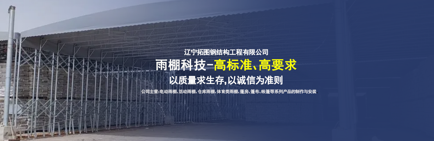 遼寧拓圖鋼結構工程有限公司是一家專業(yè)從事推拉篷設計、制作、安裝、使用、維修的綜合性公司。公司主營:電動雨棚、活動雨棚、倉庫雨棚、體育類雨棚、篷房、篷布、帳篷等系列產品的制作與安裝。 遼寧拓圖鋼結構工程有限公司堅持以市場為導向,以科技創(chuàng)新為動力,以質量求生存,以誠信為準則,倡導求實、進取、創(chuàng)新的企業(yè)精神。“科學的管理、嚴謹的設計、 的制作安裝、嚴格的質量檢測、良好的后期服務成就企業(yè)的信譽,為您提供優(yōu)質服務。 遼寧拓圖鋼結構工程有限公司傾力于開發(fā)應用三維空間結構與新材料的結合,將廣告藝術視覺表現(xiàn)形式與張力膜材科學的結合,推出多彩推拉蓬,依靠先進的科學技術,將推拉蓬建筑表現(xiàn)形式無限延伸,立志走在建筑科學的前沿,引導建筑時尚潮流,我們的目標是使推拉蓬建筑在中國發(fā)展壯大。 遼寧拓圖鋼結構工程有限公司憑著極強的事業(yè)熱情和豐富的專業(yè)經驗以“勤勉進取、銳意創(chuàng)新、至誠至信”的精神使公司得到迅速健康發(fā)展,業(yè)務范圍遍及全國。科學的管理、嚴謹的設計、高標準的制作安裝流程,嚴格把控產品質量,熱誠的售后服務是企業(yè)競爭力的源泉。 遼寧拓圖鋼結構工程有限公司人愿以最誠摯的態(tài)度,歡迎廣大客戶的蒞臨與溝通!愿為市場提供優(yōu)...